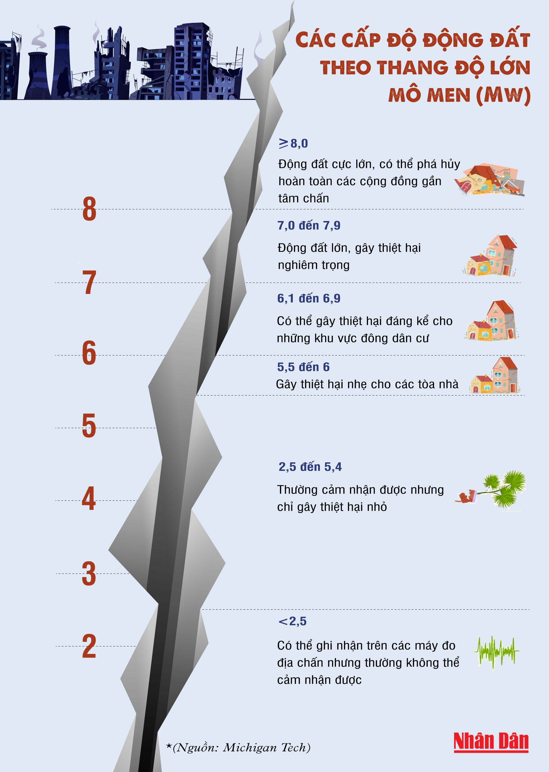 [Infographic] Các cấp độ động đất theo thang độ lớn mô men