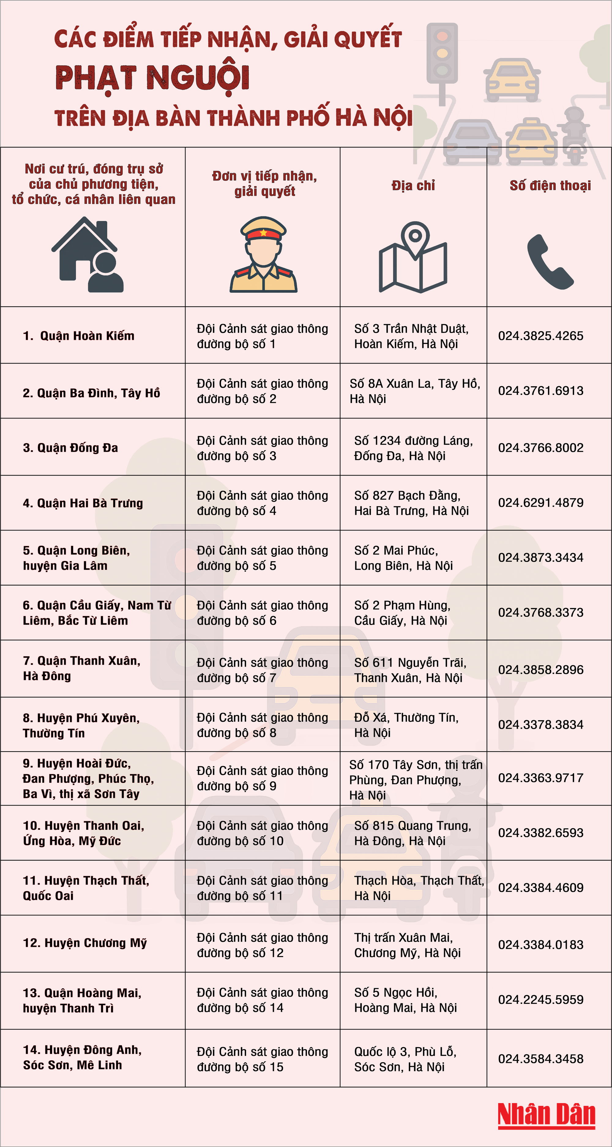 [Infographic] Các điểm tiếp nhận giải quyết phạt nguội tại Hà Nội