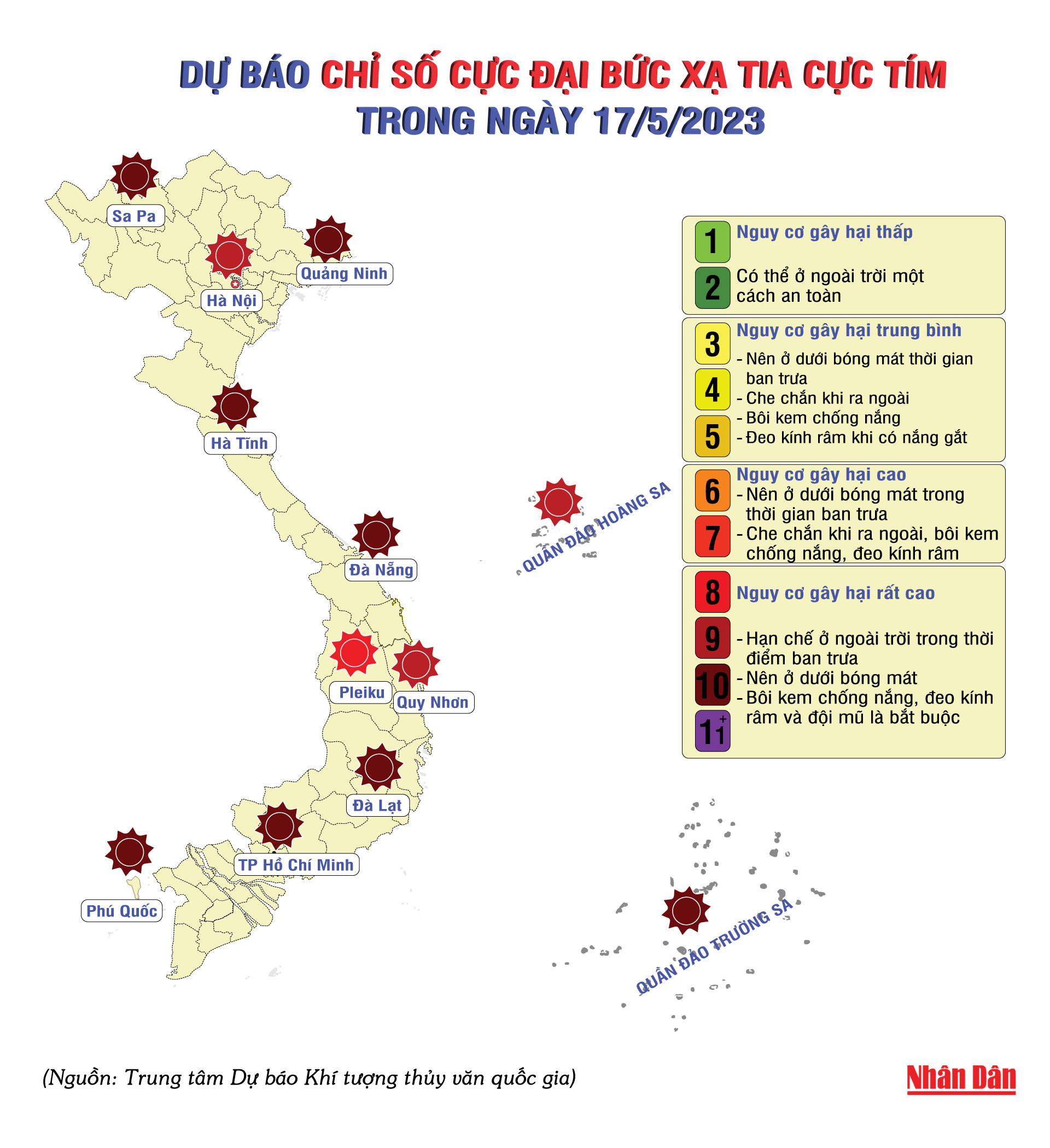 [Infographic] Cảnh báo chỉ số cực đại bức xạ tia cực tím ngày 17/5