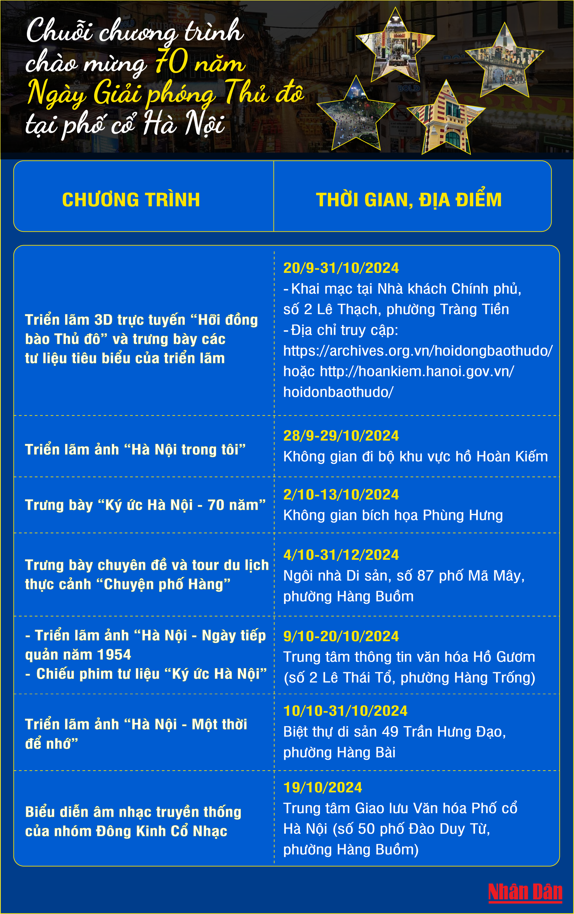 [Infographic] Chuỗi chương trình chào mừng 70 năm Ngày Giải phóng Thủ đô tại phố cổ Hà Nội