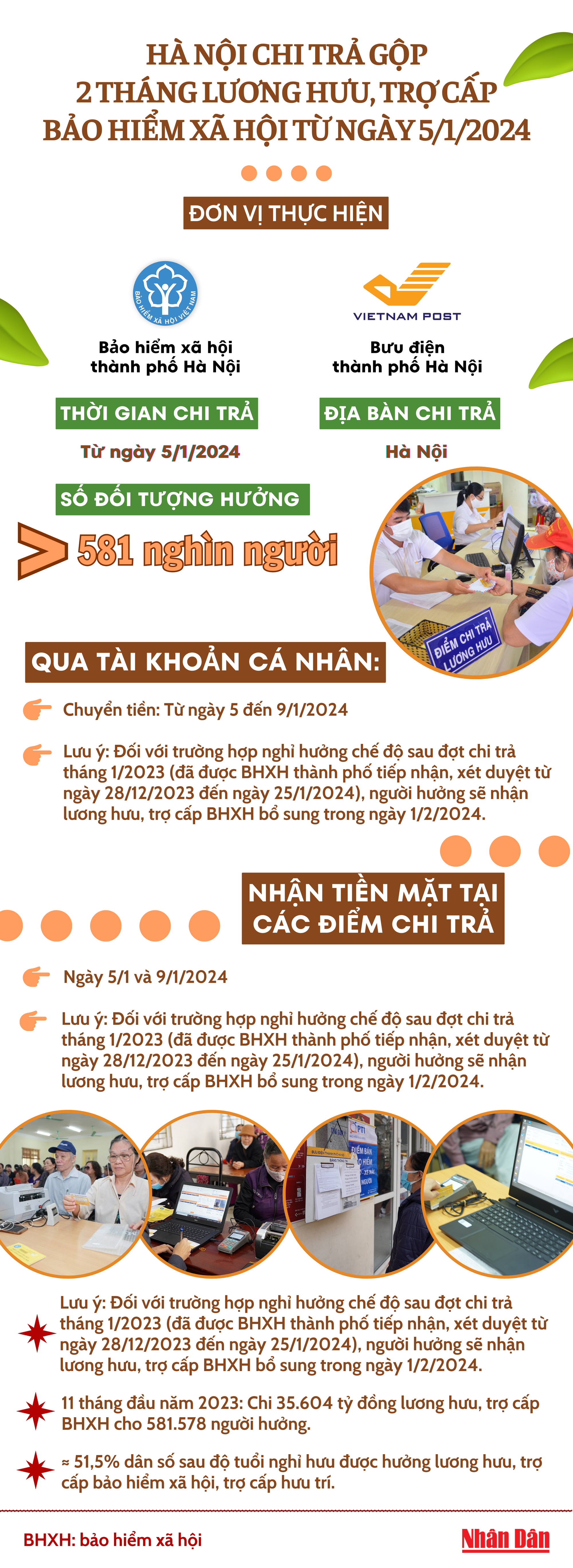 [Infographic] Hà Nội chi trả gộp 2 tháng lương hưu, trợ cấp bảo hiểm xã hội từ ngày 5/1/2024