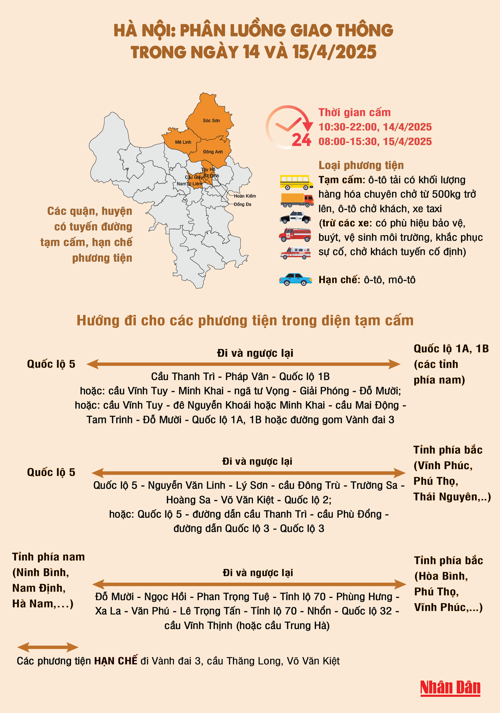 Cơ quan Công an yêu cầu tất cả người điều khiển phương tiện khi tham gia giao thông nghiêm chỉnh chấp hành Luật Trật tự, an toàn giao thông đường bộ và sự hướng dẫn, điều tiết phân luồng phương tiện của lực lượng chức năng; chủ động lựa chọn thời gian và lộ trình di chuyển phù hợp.