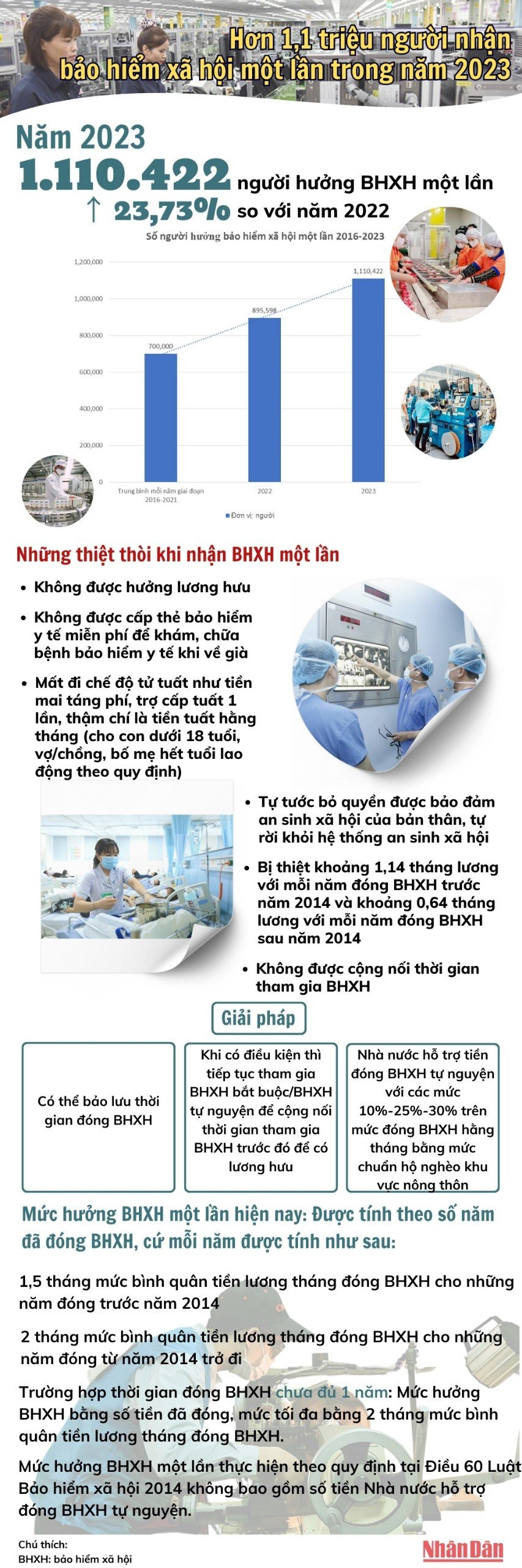 [Infographic] Hơn 1,1 triệu người nhận bảo hiểm xã hội một lần trong năm 2023