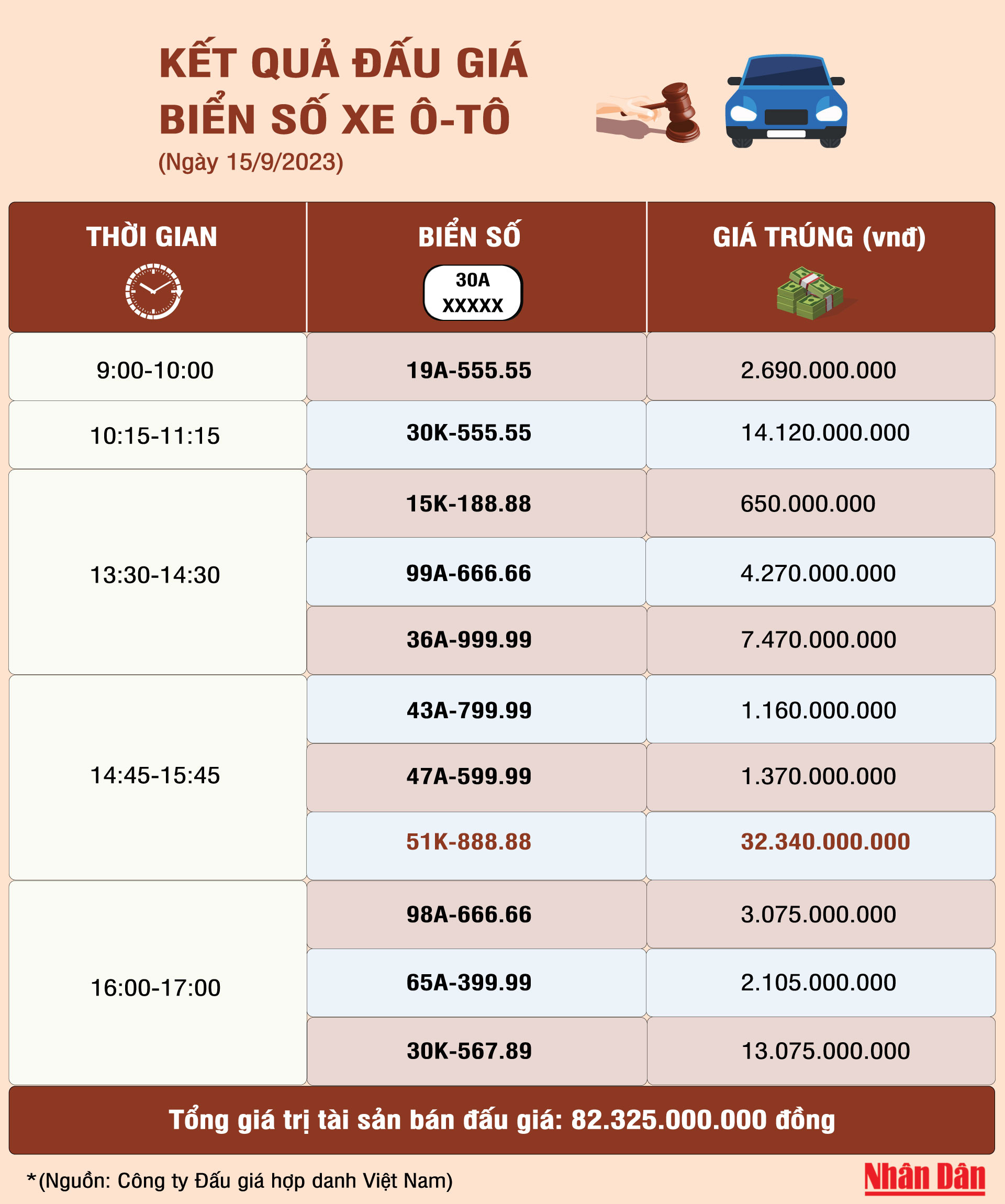 [Infographic] Kết quả đấu giá biển số xe ô-tô lần thứ nhất