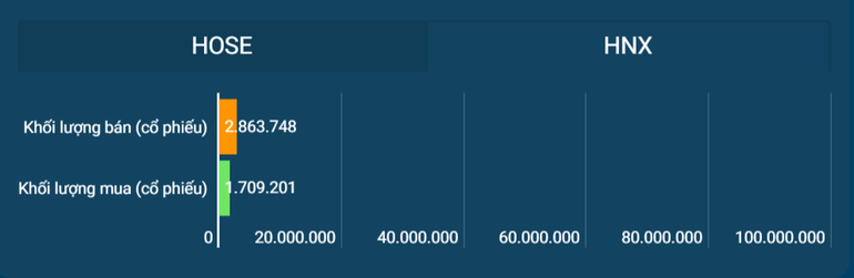 Giá trị khớp lệnh trên hai sàn niêm yết đạt 23.332.86 tỷ đồng được giao dịch, giảm mạnh 49,68% so với phiên đột biến kỷ lục gần 47 ngàn tỷ đồng hôm qua, trên mức trung bình.