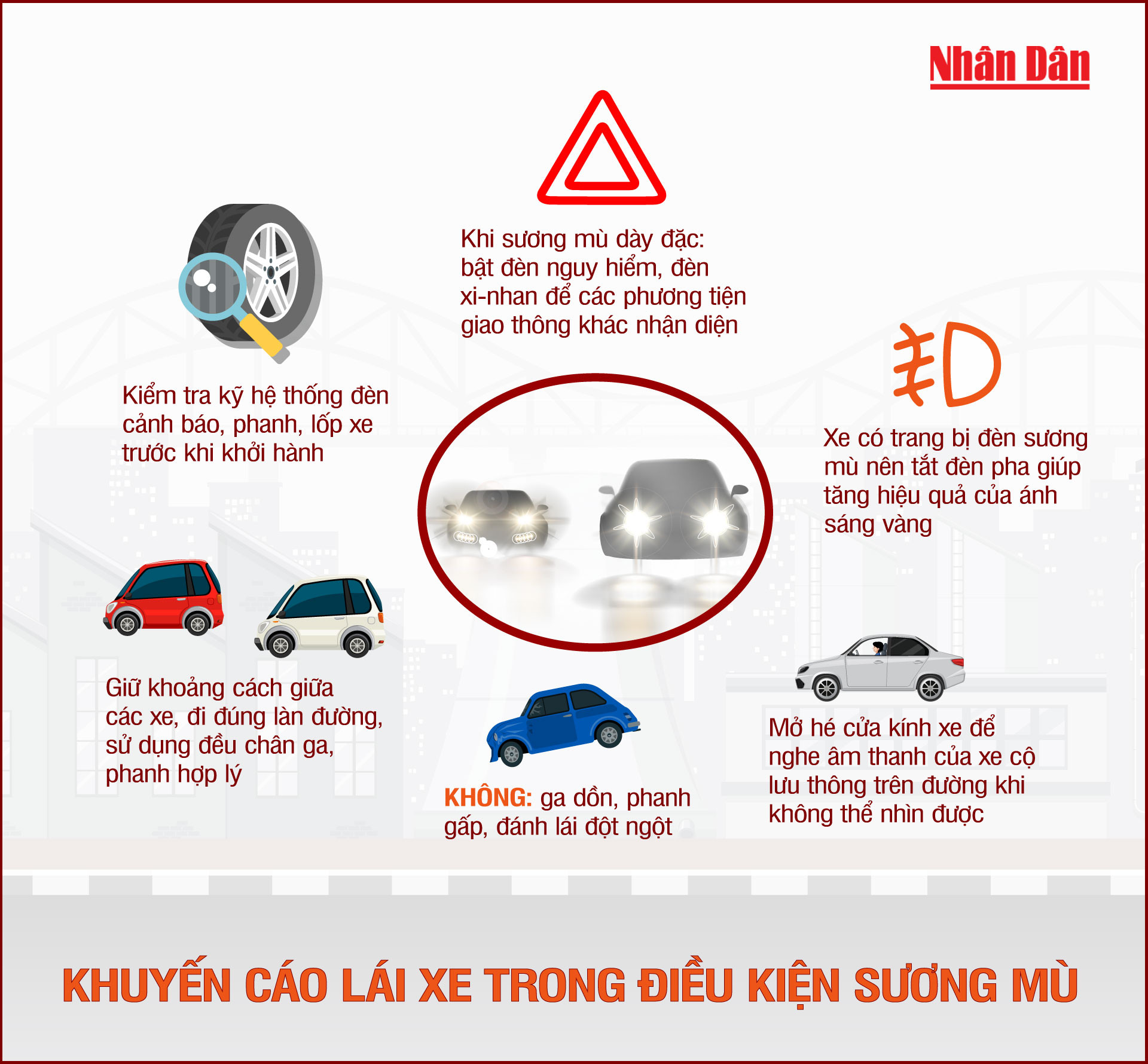 Cục Cảnh sát giao thông vừa đưa ra khuyến cáo về những điều lái xe cần biết khi tham gia giao thông trong thời tiết sương mù trong bối cảnh nhiều vụ tai nạn giao thông đáng tiếc xảy ra, các vụ va chạm do hạn chế tầm nhìn có chiều hướng gia tăng.