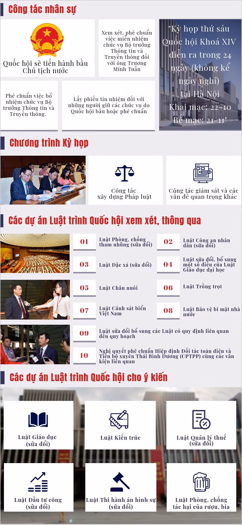 NDĐT- Ngoài công tác nhân sự quan trọng như bầu Chủ tịch nước, Bộ trưởng Thông tin và Truyền thông, lấy phiếu tín nhiệm; Kỳ họp lần này còn thực hiện công tác xây dựng pháp luật, các hoạt động giám sát và những vấn đề quan trọng khác.