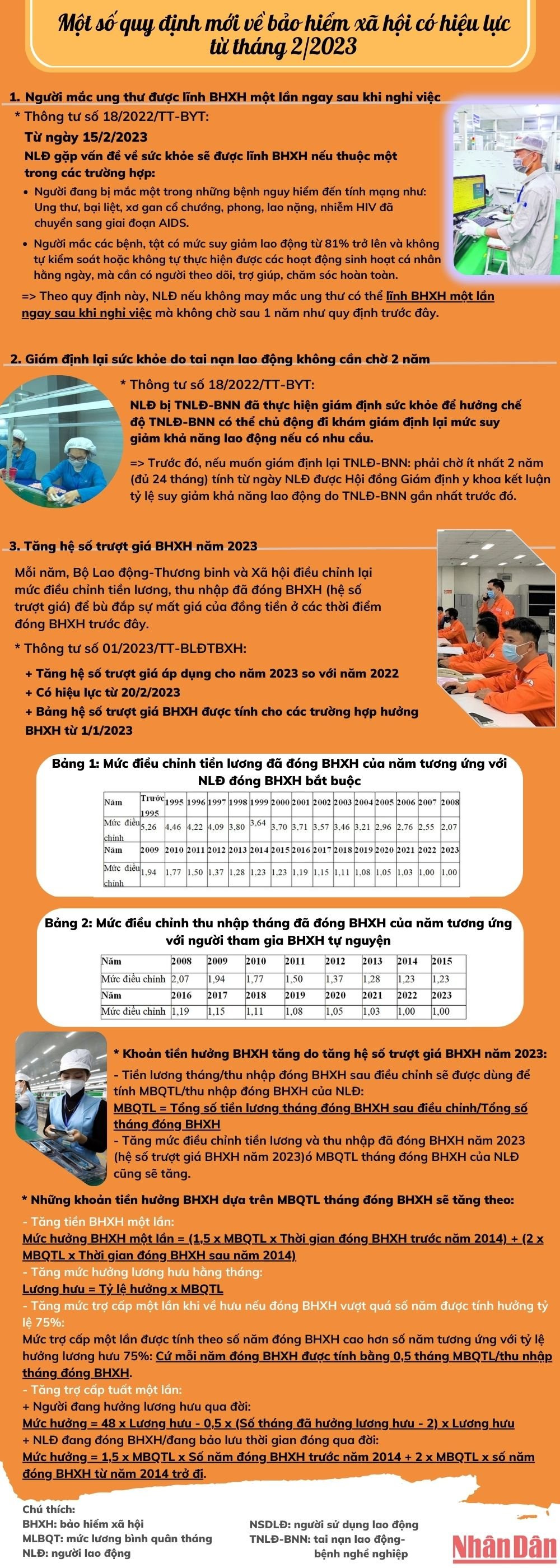 [Infographic] Một số quy định mới về bảo hiểm xã hội có hiệu lực từ tháng 2/2023
