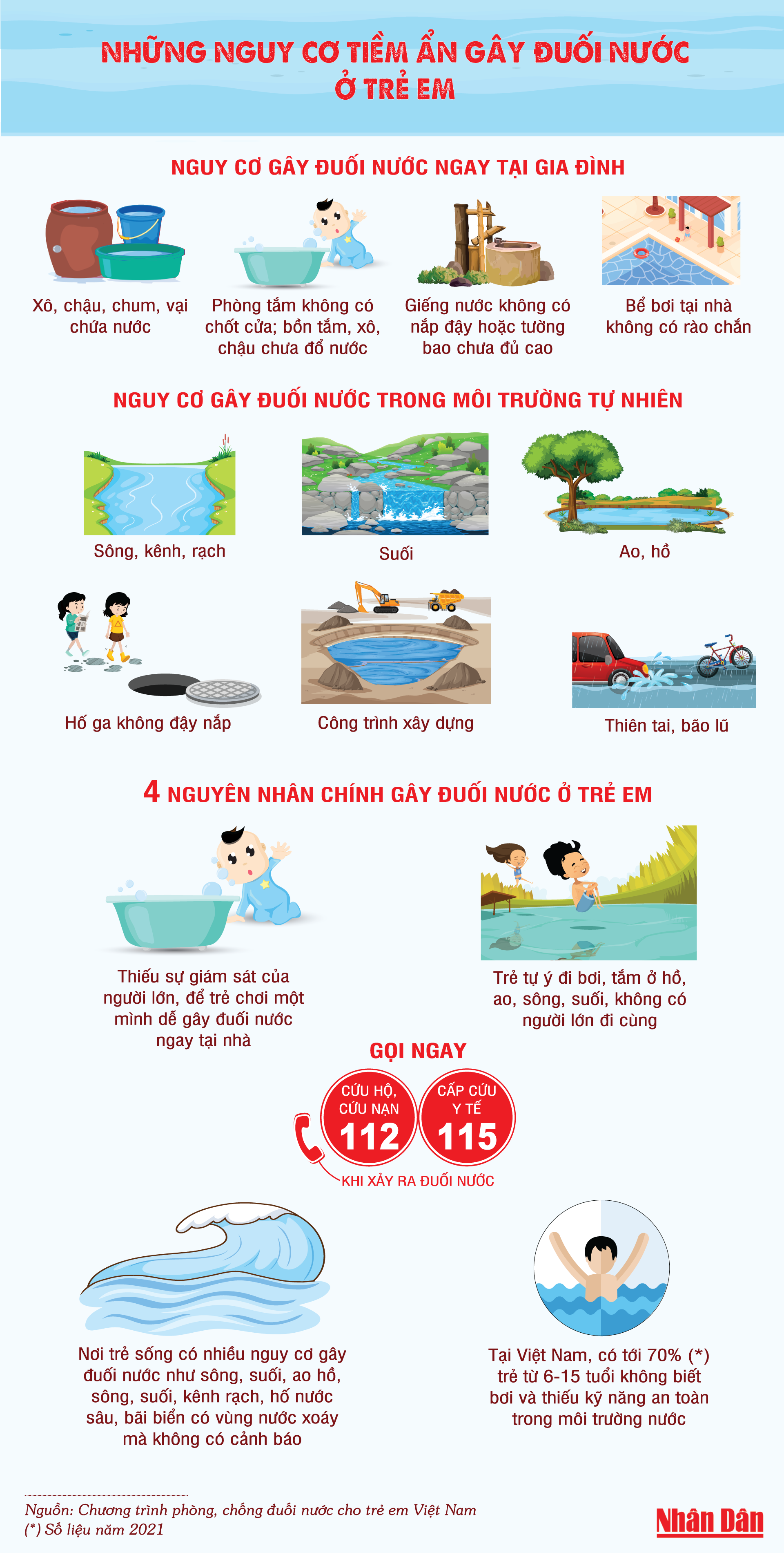 Những nguy cơ tiềm ẩn gây đuối nước ở trẻ em theo khuyến cáo của Chương trình phòng, chống đuối nước cho trẻ em tại Việt Nam.