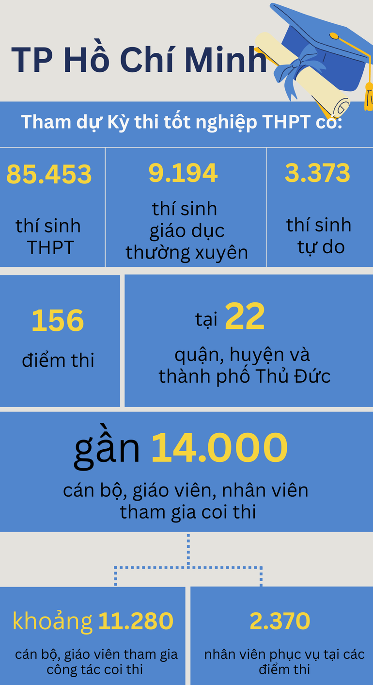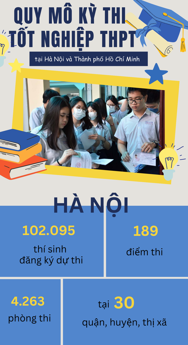 [Infographic] Quy mô kỳ thi tốt nghiệp trung học phổ thông tại Hà Nội và Thành phố Hồ Chí Minh
