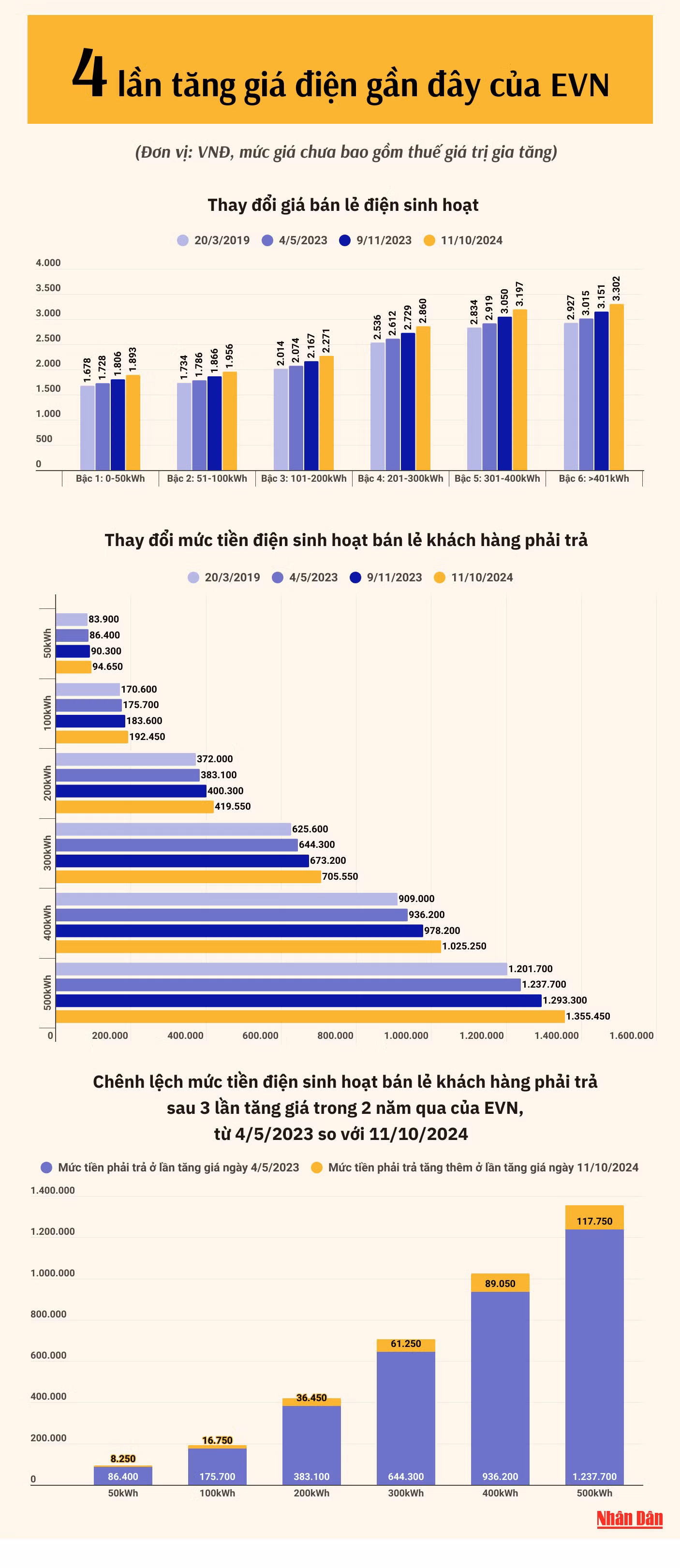 [Infographic] Thay đổi giá bán lẻ điện sinh hoạt sau 4 lần tăng giá điện gần đây của EVN