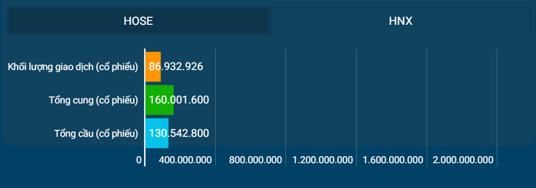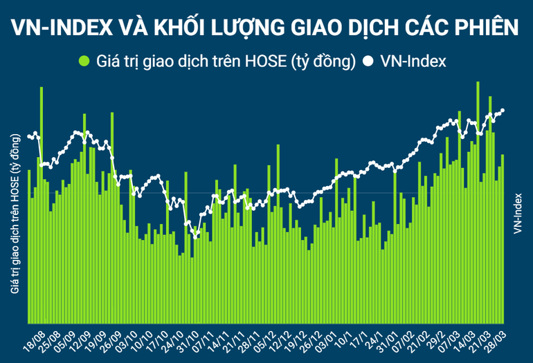 Giá trị khớp lệnh trên hai sàn niêm yết ngày hôm qua đạt 27.667,92 tỷ đồng được giao dịch, tăng 9,19% so với phiên trước, trên trung bình. Khối lượng giao dịch của VN-Index tăng 10,60% thể hiện dòng tiền ngắn hạn đang cải thiện, luân chuyển tốt trở lại, mặc dù thành viên công ty chứng khoán VNDirect vẫn chưa chính thức kết nối giao dịch.