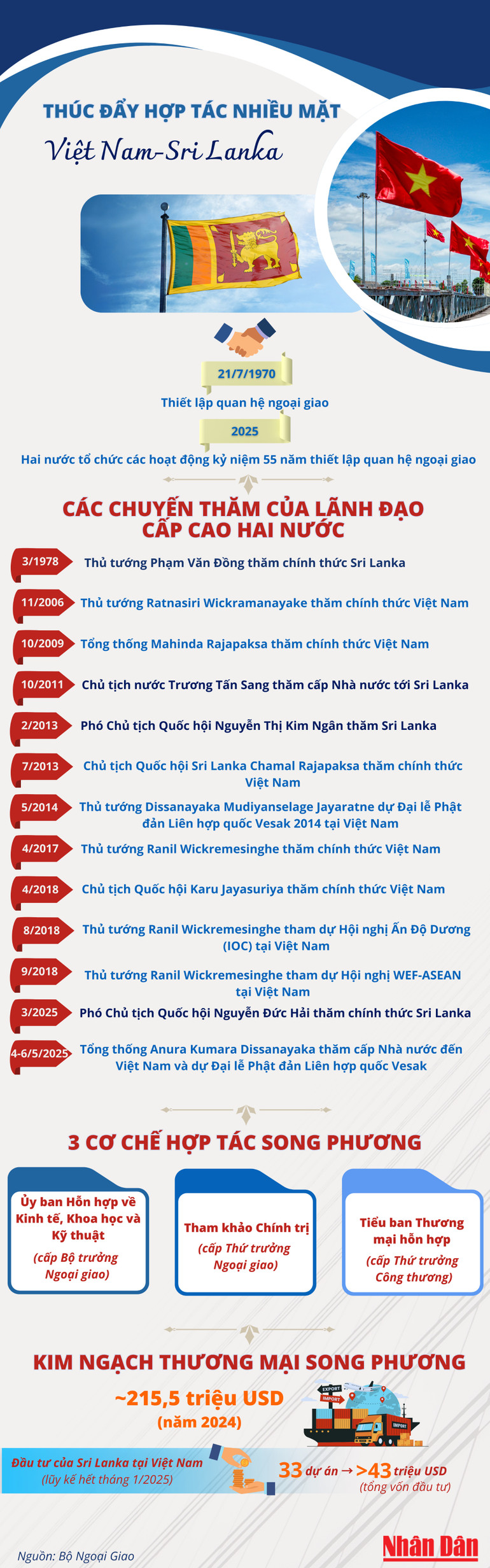 quan hệ với Việt Nam. Kể từ khi thiết lập quan hệ ngoại giao vào ngày 21/7/1970, hai nước luôn gắn bó, hỗ trợ lẫn nhau trong quá trình xây dựng và phát triển đất nước. Chính phủ hiện nay của Sri Lanka coi Việt Nam là hình mẫu phát triển kinh tế, hội nhập quốc tế thành công để học tập, đồng thời đã công nhận
