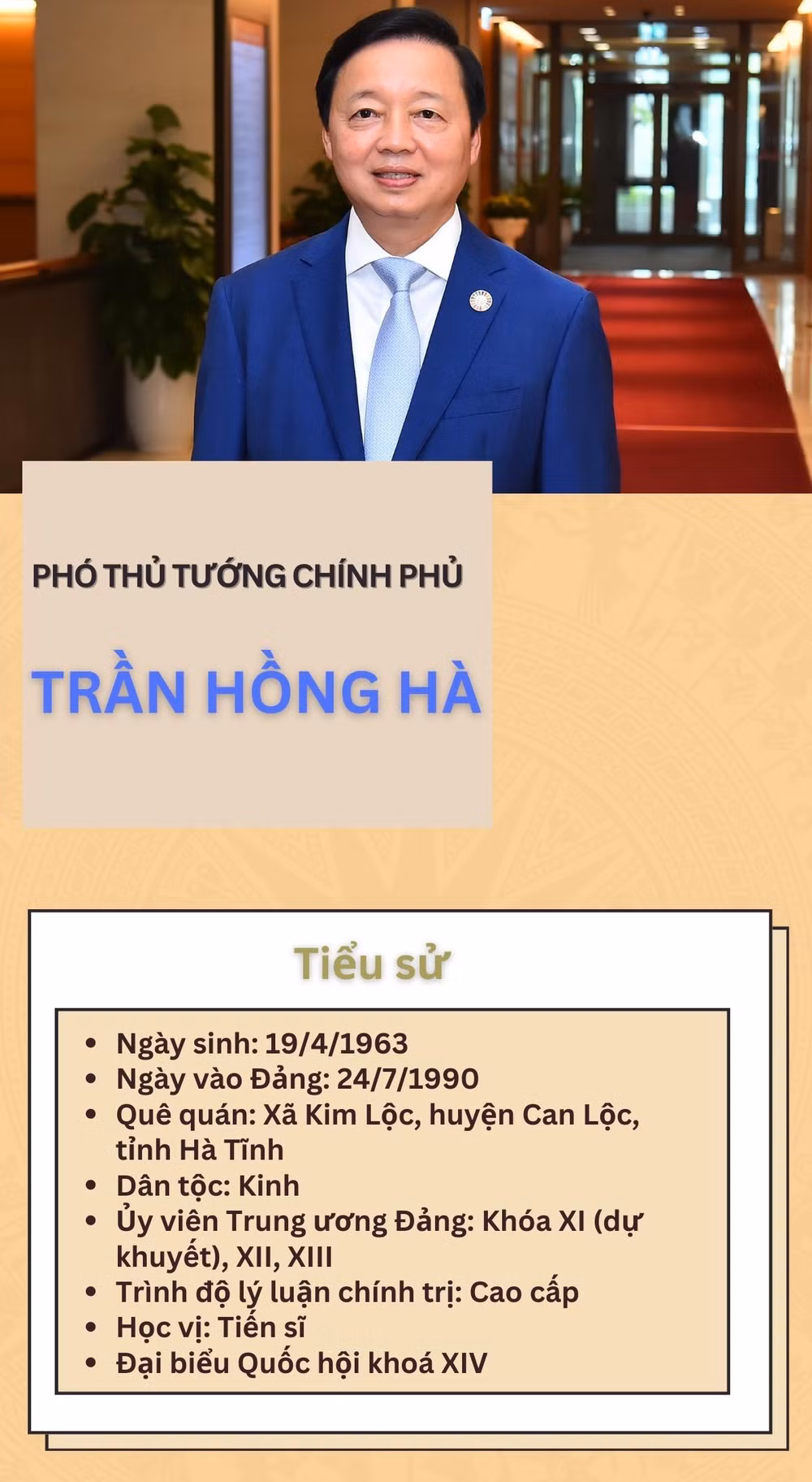 [Infographic] Tiểu sử Phó Thủ tướng Chính phủ Trần Hồng Hà