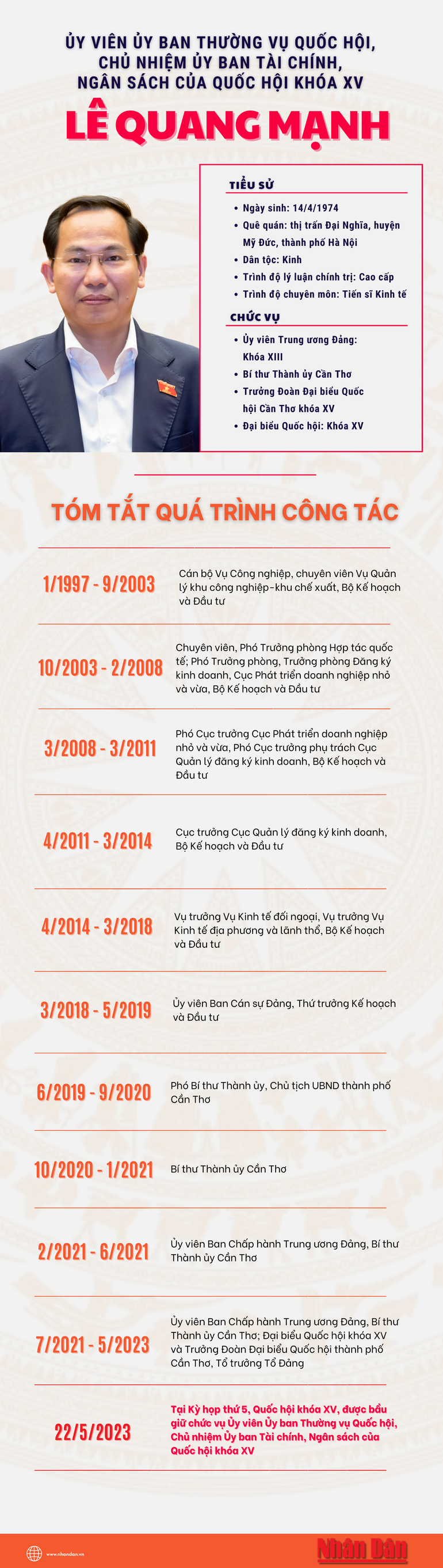 [Infographic] Tiểu sử tân Chủ nhiệm Ủy ban Tài chính, Ngân sách của Quốc hội Lê Quang Mạnh