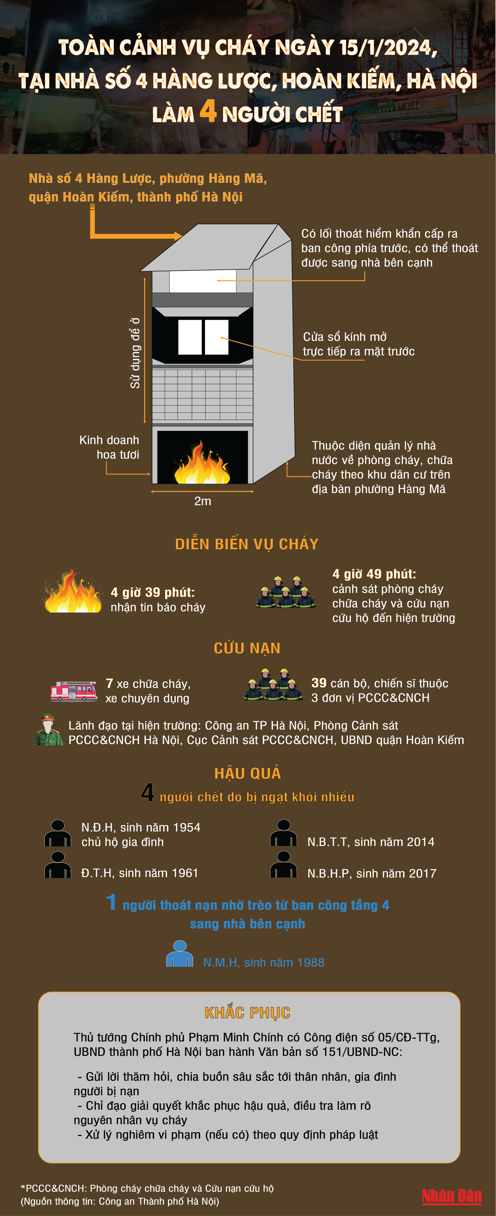 Vụ cháy tại ngôi nhà số 4 Hàng Lược, phường Hàng Mã, quận Hoàn Kiếm, Hà Nội xảy ra sáng sớm 15/1, làm 4 người tử vong.