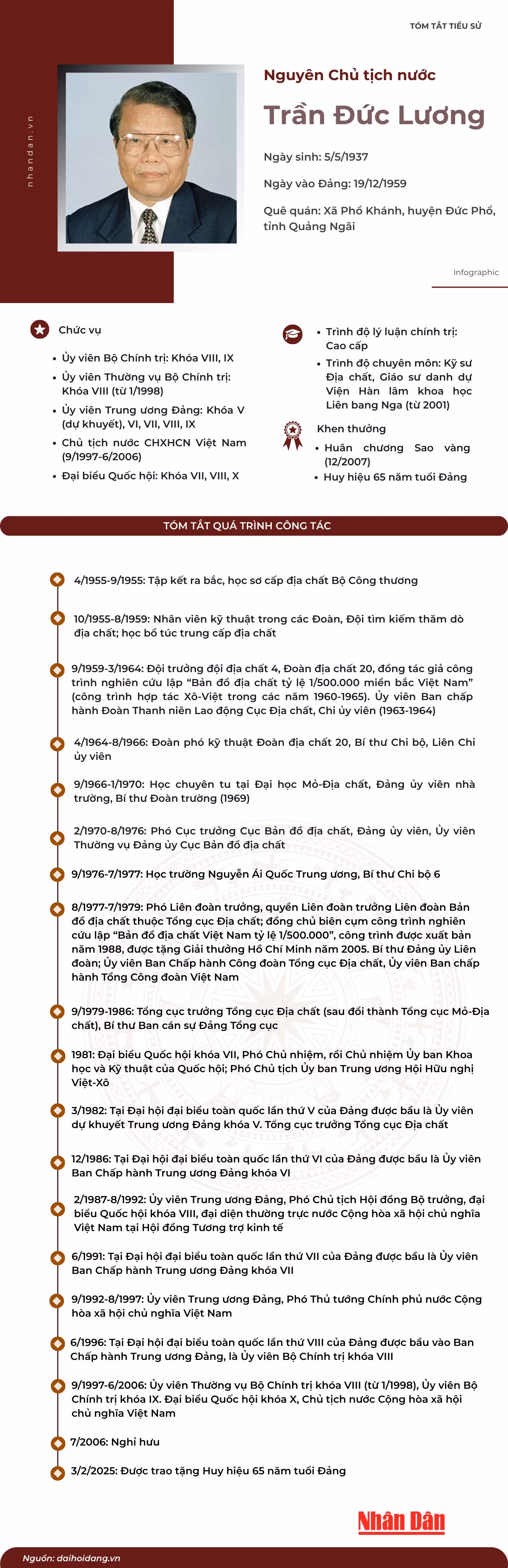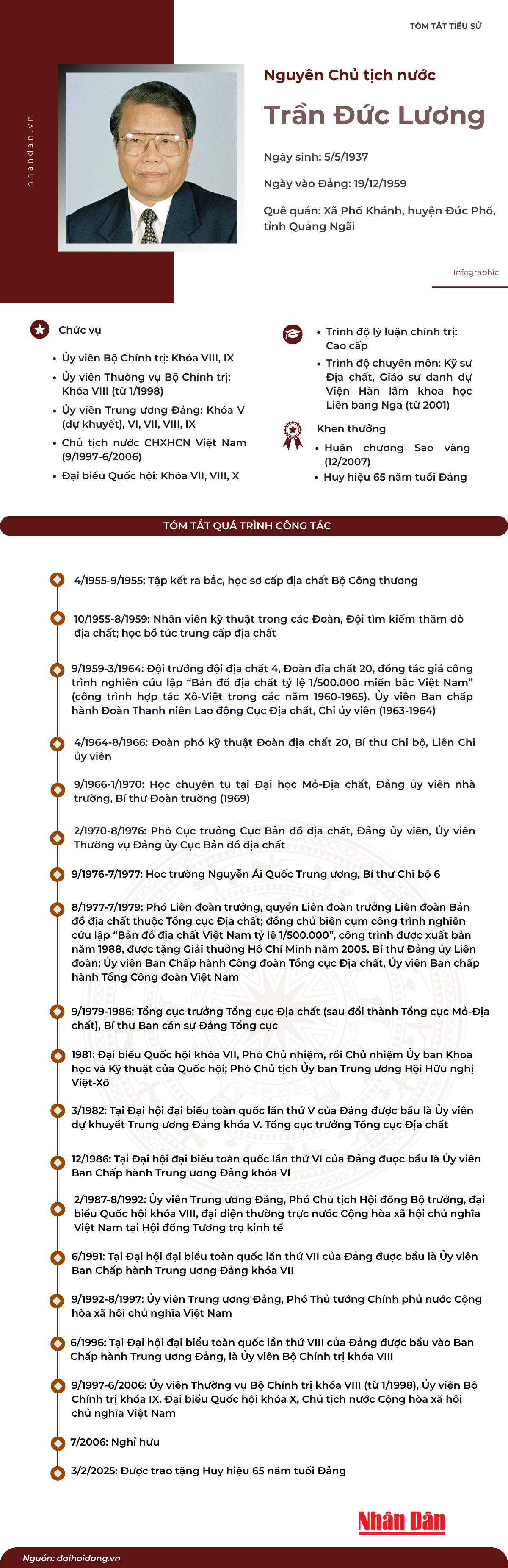 [Infographic] Tóm tắt tiểu sử nguyên Chủ tịch nước Trần Đức Lương