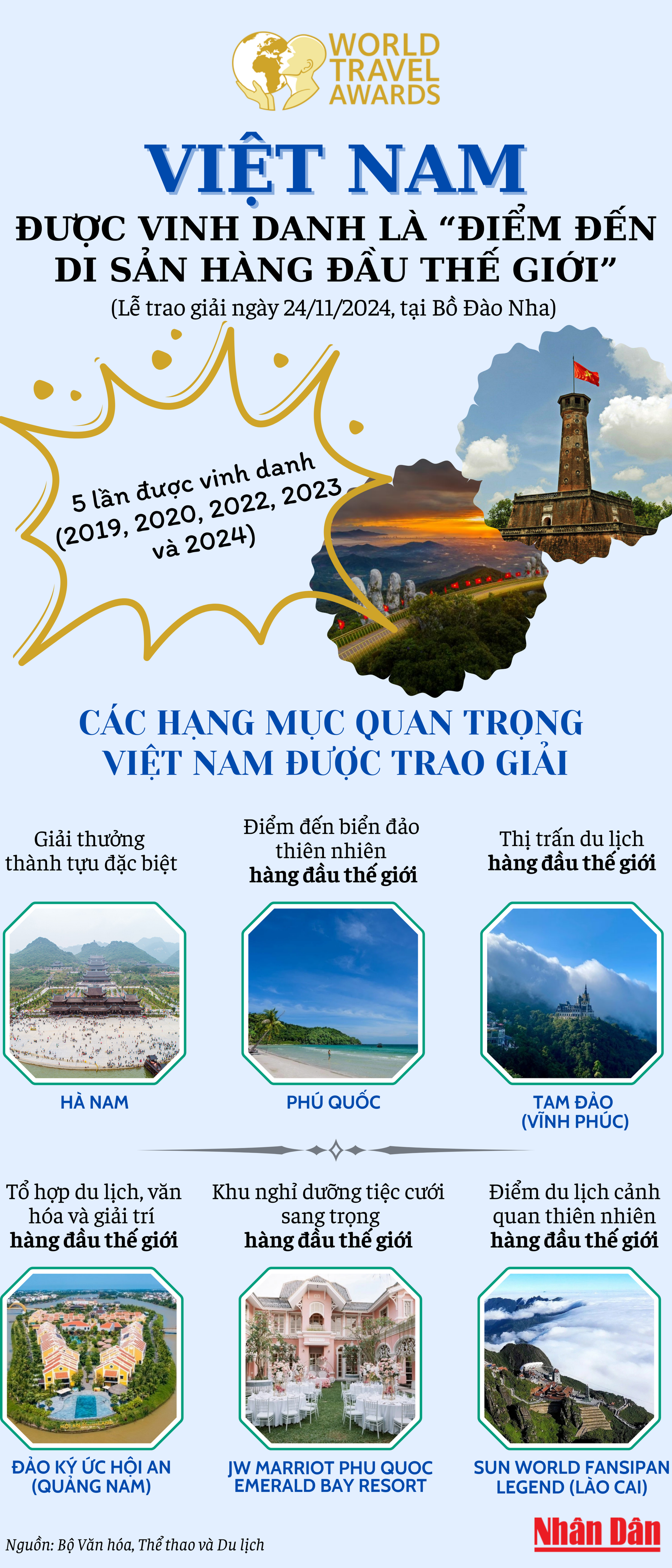 [Infographic] Việt Nam được vinh danh là "Điểm đến di sản hàng đầu thế giới" lần thứ 5