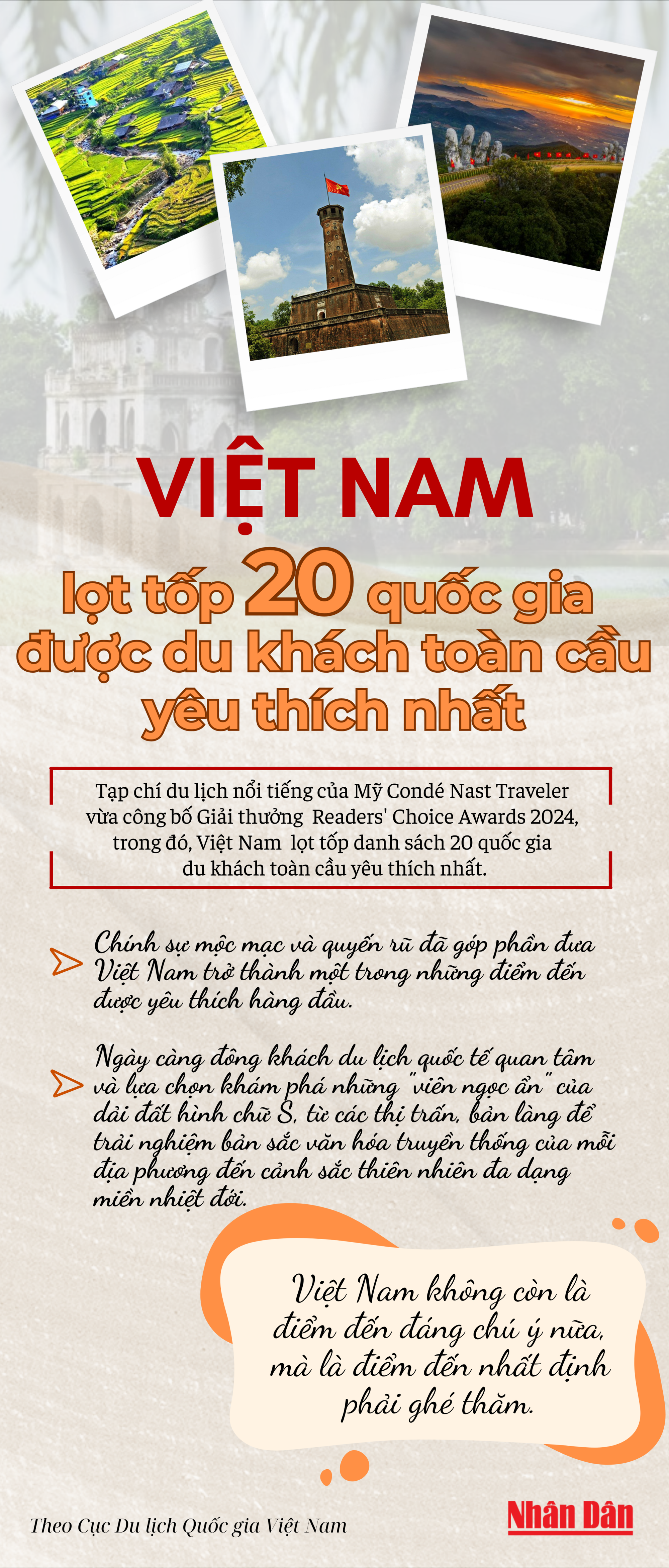 [Infographic] Việt Nam lọt tốp 20 quốc gia được du khách toàn cầu yêu thích nhất