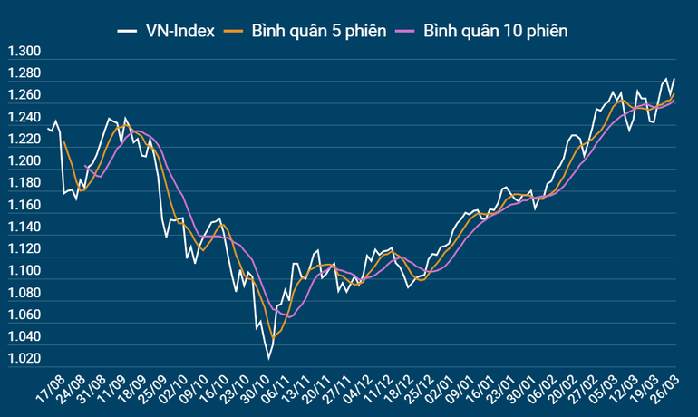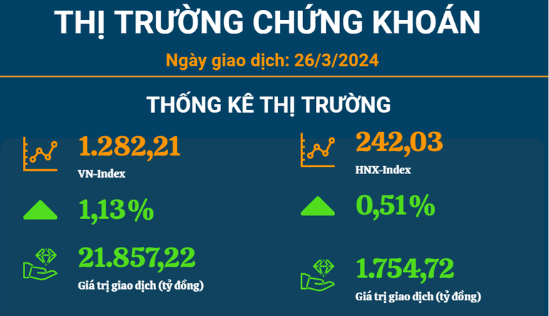 HNX-Index trong phiên 26/3 tăng 1,22 điểm (0,51%) lên mức 242,03 điểm.