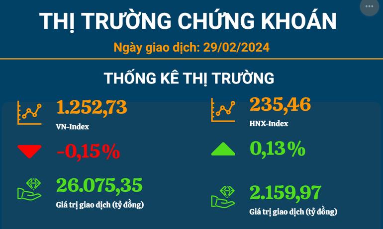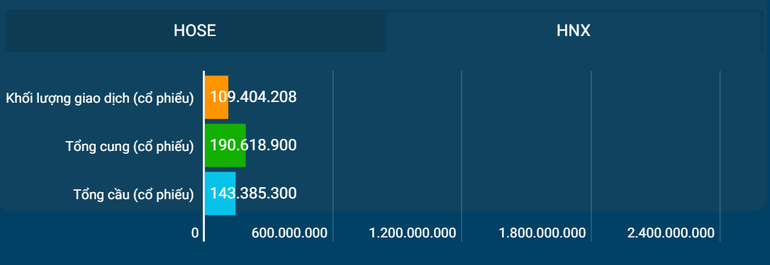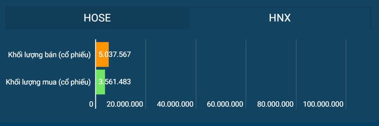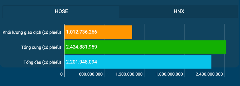 Giá trị khớp lệnh trên hai sàn niêm yết tăng 15% so với phiên trước với 28.223,49 tỷ đồng được giao dịch, vượt mức trung bình. Trong đó khối luợng giao dịch của VN-Index đạt hơn 1 tỷ cổ phiếu.