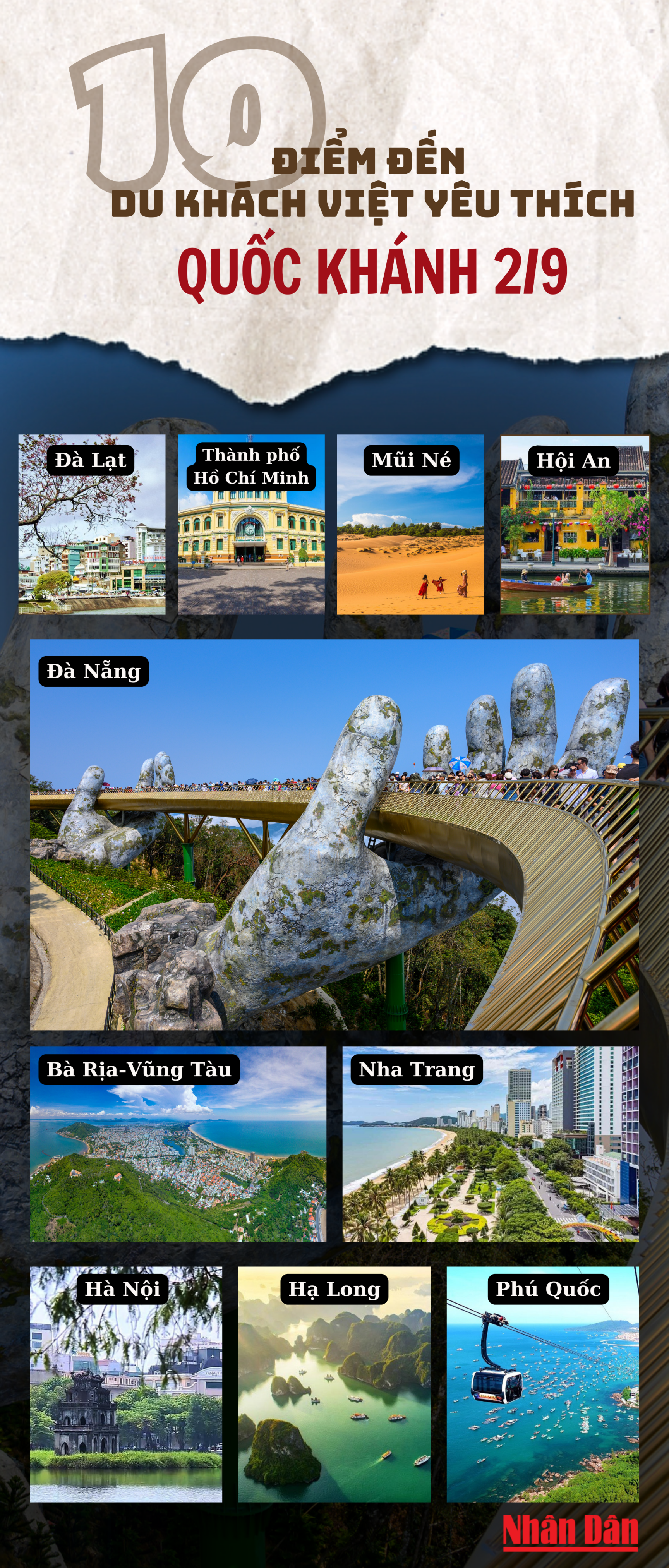 [Infographics] 10 điểm đến du khách Việt yêu thích dịp Quốc khánh 2/9
