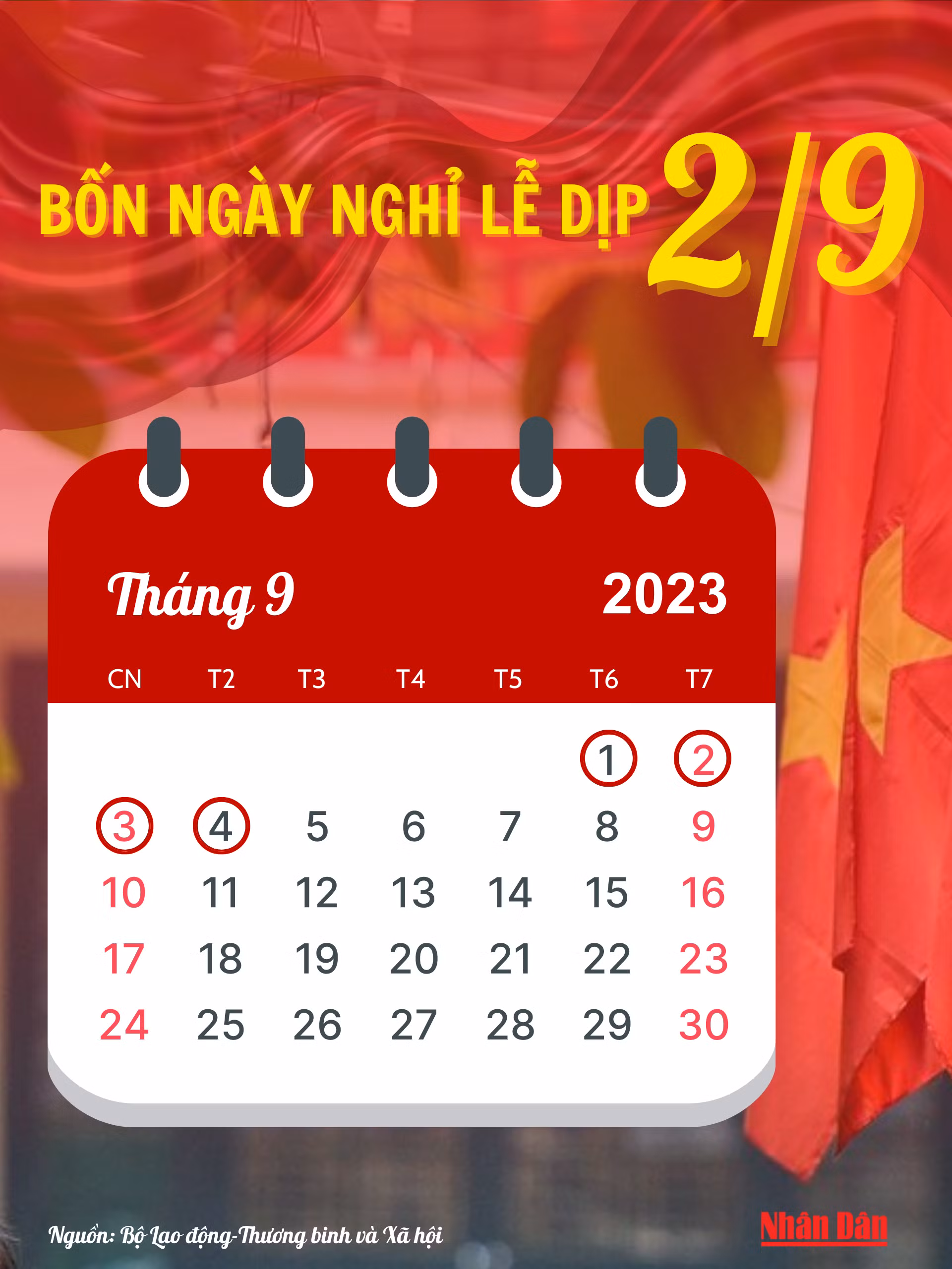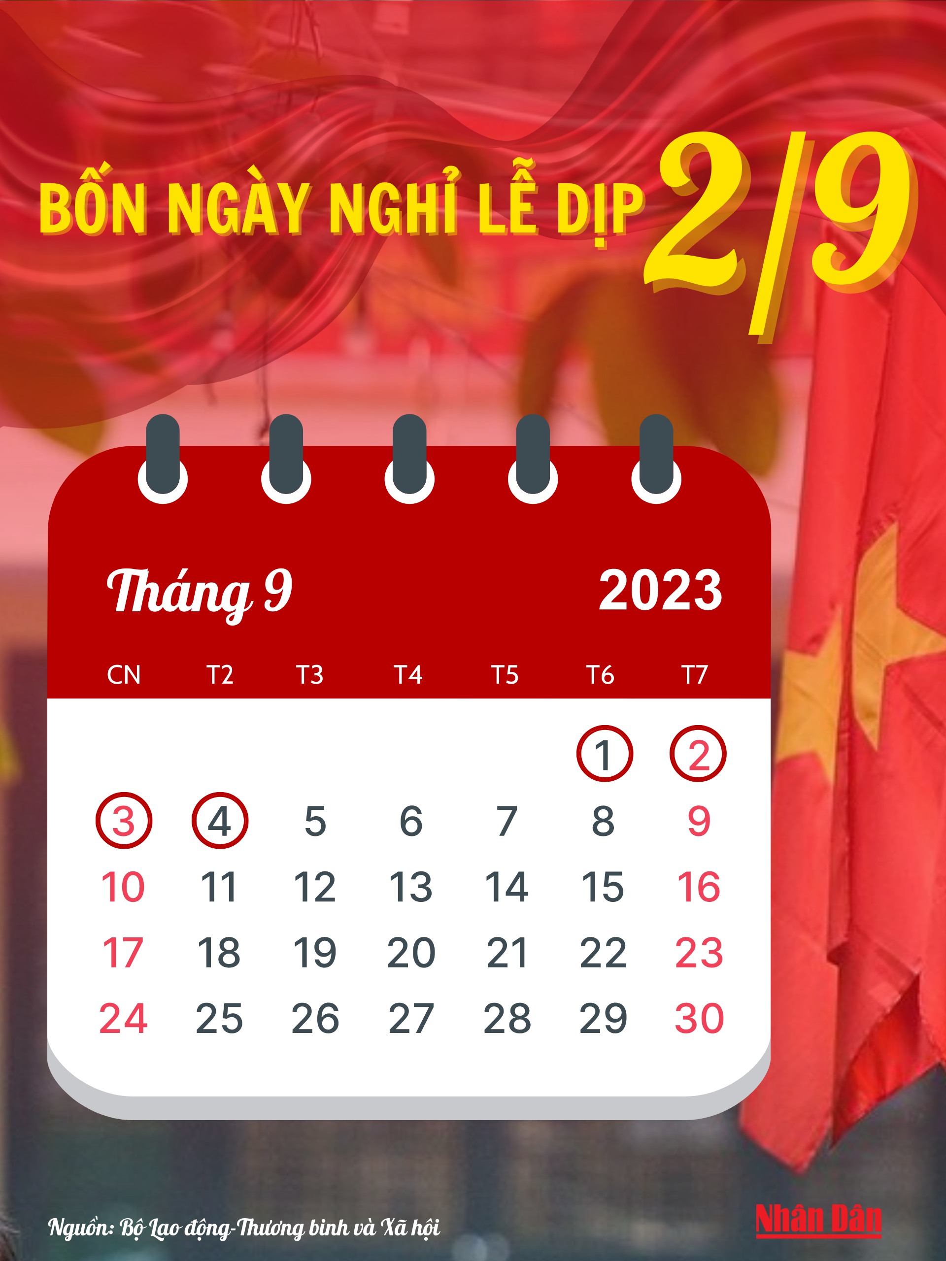 [Infographics] Bốn ngày nghỉ lễ dịp Quốc khánh năm 2023