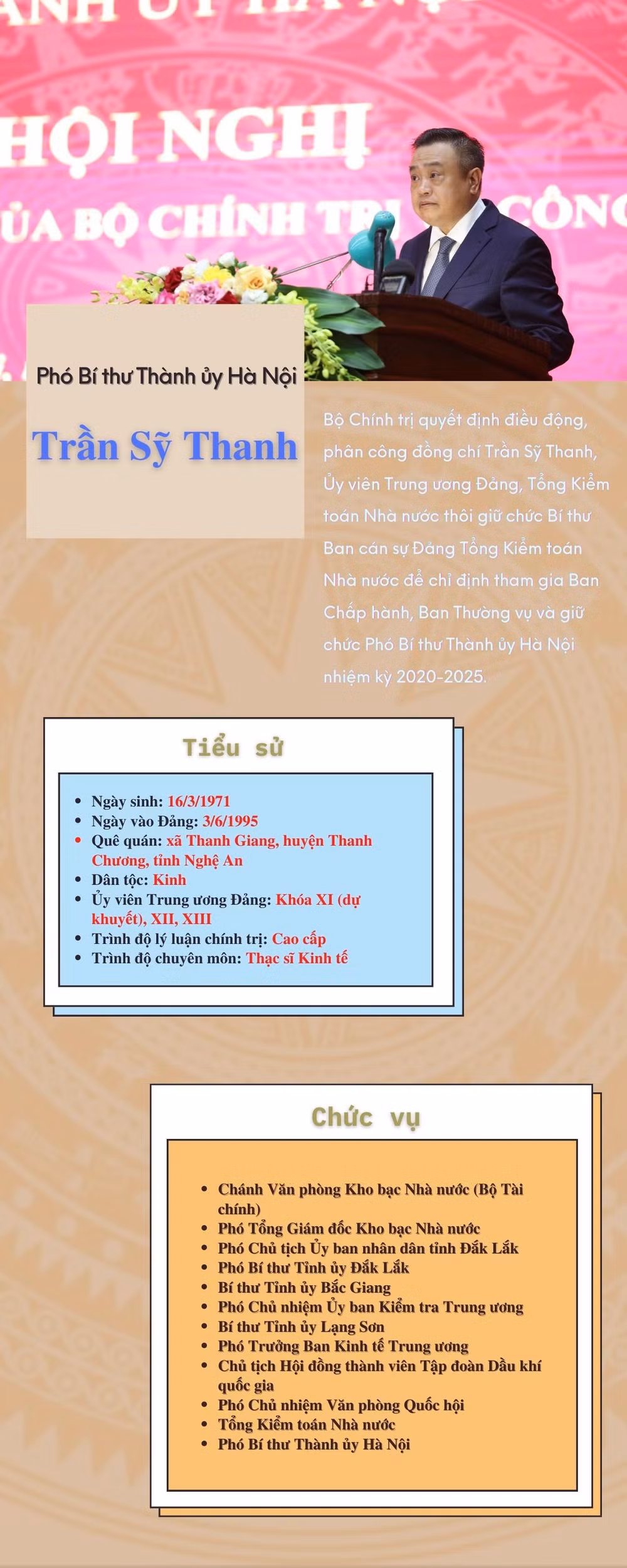 [Infographics] Thông tin về tân Phó Bí thư Thành ủy Hà Nội Trần Sỹ Thanh
