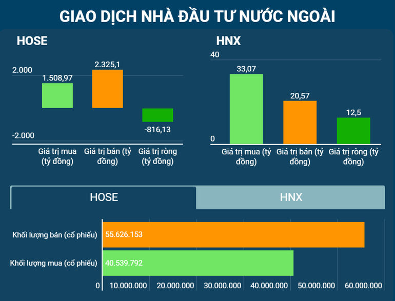 Thanh khoản trên hai sàn niêm yết suy giảm khá mạnh so với trung bình tuần trước khi chỉ đạt 16.178,74 tỷ đồng được giao dịch, dưới mức trung bình. Nhà đầu tư nước ngoài tiếp tục bán ròng với giá trị 429,28 tỷ đồng trên HOSE, tập trung ở các cổ phiếu ngân hàng; mua ròng trên HNX với giá trị 40,78 tỷ đồng.