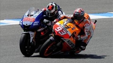 Chàng trai 20 tuổi Marquez đã có một ngày thi đấu đầy nhiệt huyết và quyết tâm. Tuy nhiên, có lẽ do mới tham gia giải lần đầu nên Marquez tỏ ra hơi vất vả. Sáu năm kinh nghiệm của người “đàn anh” Lorenzo giúp tay đua này giữ vững vị trí thứ hai khá dễ dàng trước Marquez. Khéo léo đưa “cậu em trai” vào những cái bẫy ở các khúc cua, Lorenzo có phần thảnh thơi, trong khi Marquez lại có phần lúng túng.
