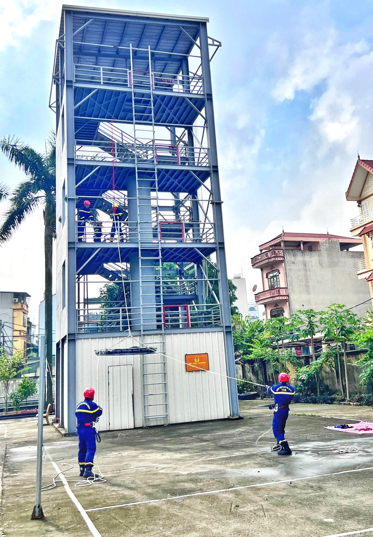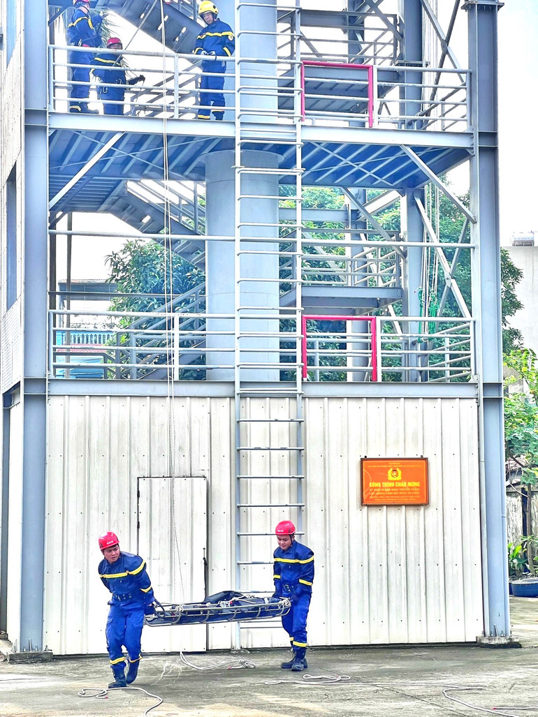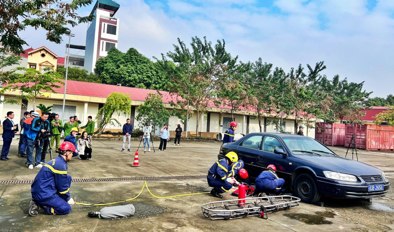 Thao diễn kỹ năng chữa cháy, cứu nạn cứu hộ trong khuôn khổ Lễ khởi động Dự án.