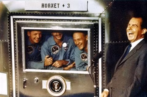 Phi hành đoàn Apollo 11 cùng Tổng thống Mỹ Ních-xơn.