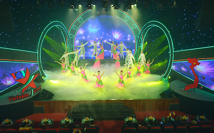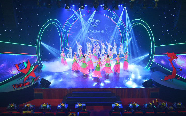 Tiết mục biểu diễn nghệ thuật tại điểm cầu Nhà hát VOV (Hà Nội).
