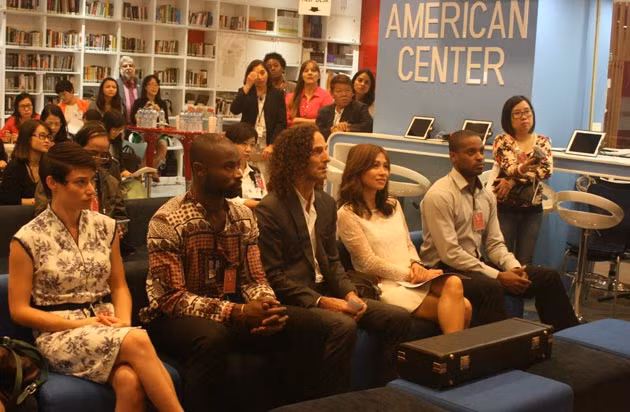 Kenny G và các nghệ sĩ ballet chụp ảnh lưu niệm cùng Ngài Đại sứ Mỹ Ted Osius.