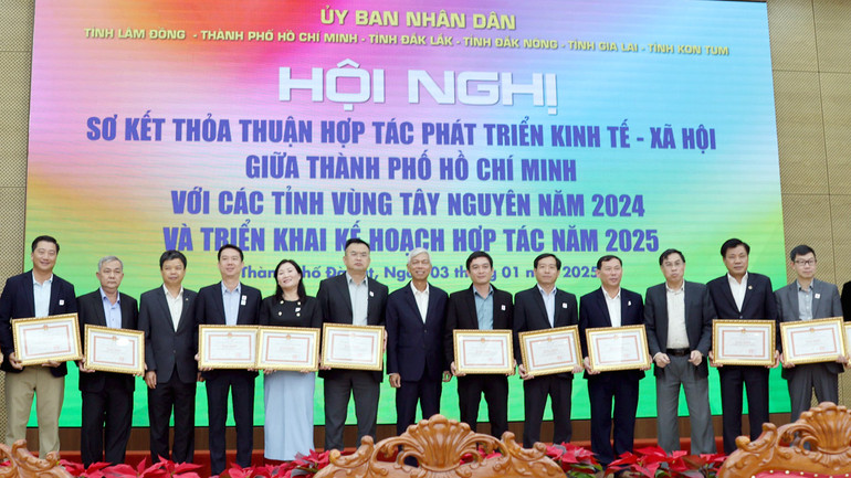 Lãnh đạo Thành phố Hồ Chí Minh và các tỉnh Tây Nguyên đã khen thưởng các đơn vị có đóng góp tích cực vào kết quả thỏa thuận hợp tác phát triển kinh tế-xã hội giữa thành phố mang tên Bác và các tỉnh Tây Nguyên.