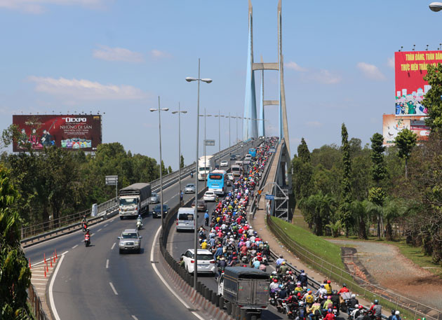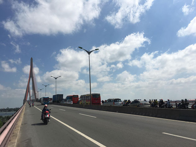 Ùn tắc kéo dài trên cầu Mỹ Thuận.