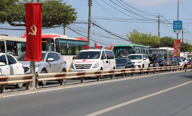 Từ 10 giờ ngày 10-2, trên tuyến QL 1A đoạn qua tỉnh Ninh Thuận bắt đầu ùn tắc giao thông, đoàn xe ô tô, gắn máy các loại nối đuôi nhau dài gần 2 km. Đến 12 giờ cùng ngày, tình hình kẹt xe càng nghiêm trọng hơn.