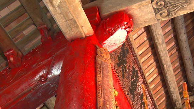 Cấu kiện gỗ tại đình làng Văn Xá được tự ý sơn đỏ bằng sơn công nghiệp.