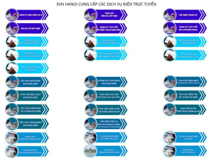 Các dịch vụ điện trực tuyến EVN HANOI đang cung cấp.