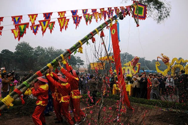 Dựng cây nêu tại Hoàng thành Thăng Long.