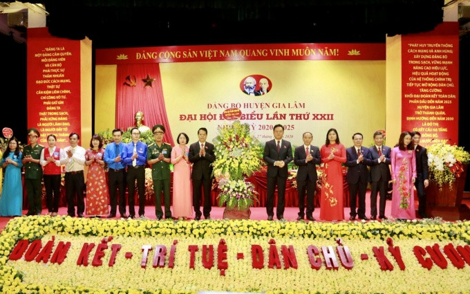 Mặt trận Tổ quốc và các tổ chức chính trị - xã hội huyện Gia Lâm tặng hoa chúc mừng Đại hội.