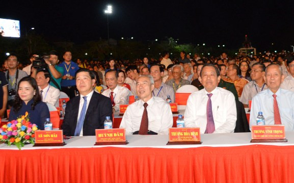 Phó Thủ tướng Thường trực Chính phủ Trương Hòa Bình (thứ hai, bên phải), cùng nhiều đồng chí lãnh đạo bộ, ngành trung ương dự đêm khai mạc.
