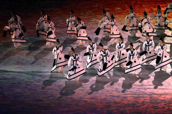 Bạch Hổ, một trong những linh thú trong văn hóa Hàn Quốc xuất hiện trên sân khấu. Linh vật của Thế vận hội mùa đông lần này là chú hổ Soohorang.