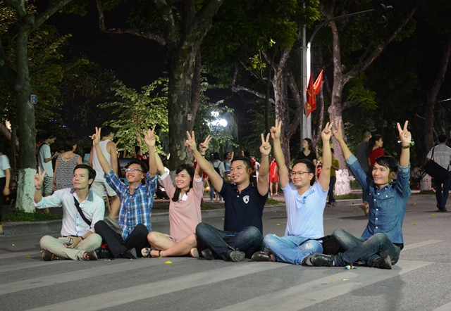 Anh Juan, một du khách đến từ Argentina hồ hởi: “Rất tuyệt vời khi được đi bộ trong không gian đông đúc và có nhiều trò chơi dân gian của các bạn như vậy. Đây là ngày thứ hai của tôi ở Hà Nội, hôm qua tôi cũng đi dạo quanh hồ Hoàn Kiếm, hôm nay thì có thể đi bộ trên đường. Mọi người rất là vui vẻ, bạn có thể thấy đấy, tôi chưa từng thấy cảnh này bao giờ”.