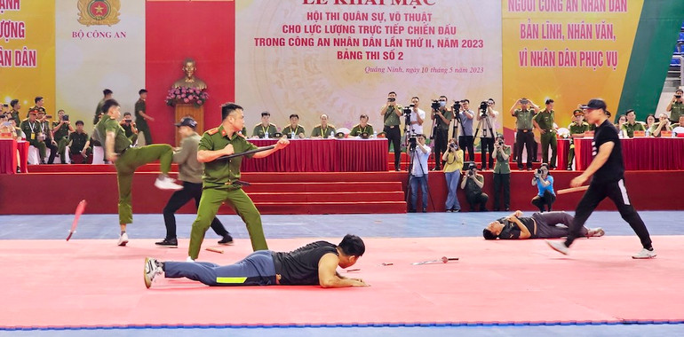 Nhân kỷ niệm 75 năm Ngày Chủ tịch Hồ Chí Minh nêu 6 điều dạy Công an nhân dân (11/3/1948-11/3/2023) và 75 năm Ngày Chủ tịch Hồ Chí Minh ra lời kêu gọi thi đua ái quốc (11/6/1948-11/6/2023), sáng 10/5, tại Quảng Ninh, Bộ Công an tổ chức khai mạc vòng loại Hội thi quân sự, võ thuật cho lực lượng trực tiếp chiến đấu trong Công an nhân dân lần II, năm 2023.