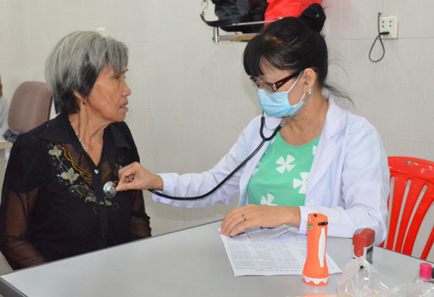 Bác sĩ Đại học Y khoa Phạm Ngọc Thạch khám bệnh cho bà con Việt kiều.