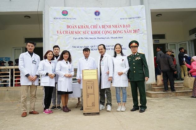 PGS, TS Vũ Xuân Phú, Phó Giám đốc Bệnh viện Phổi Trung ương; ThS Lê Kim Đức, Phó Giám đốc Bệnh viện Phổi tỉnh Thanh Hóa và gần 60 bác sĩ, điều dưỡng, kỹ thuật viên của Bệnh viện Phổi Trung ương, Bệnh viện Phổi tỉnh Thanh Hóa đã khám, chữa bệnh cho người dân tại hai xã nghèo tại tỉnh Thanh Hóa.