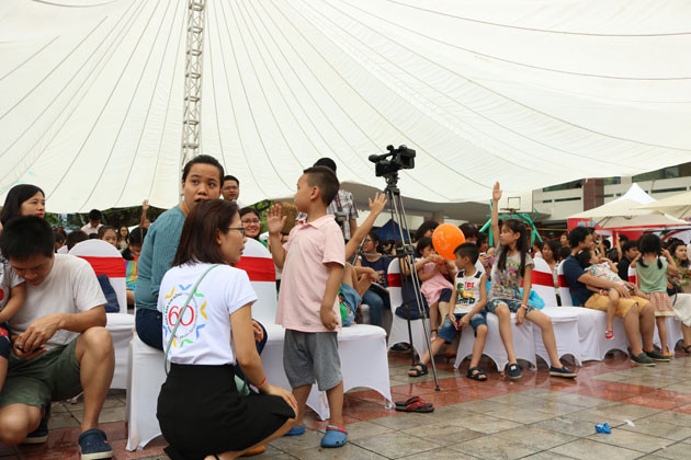 Mặc dù trời mưa to nhưng nhiều bạn nhỏ vẫn hào hứng với các trò đố vui trong buổi ra mắt sách.