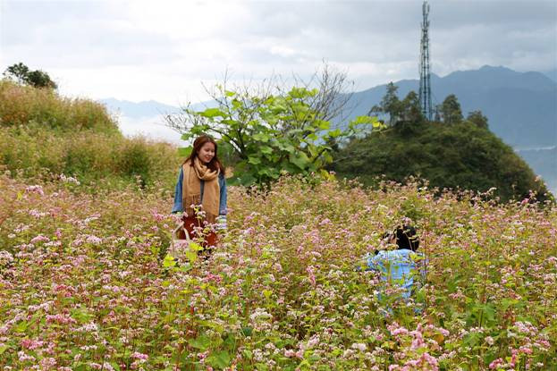 Tam giác mạch Sa Pa không giống Hà Giang, bông to hơn, màu cũng tím hồng hơn. Nhiều quý cô đến đây, vẫy vùng, “bơi lội” trong biển hoa ấy rồi quên mất mình đến Sa Pa là để lên đỉnh Fansipan.