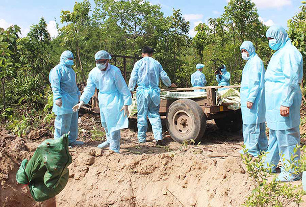 Tiêu hủy lợn bị nhiễm bệnh dịch tả lợn châu Phi. (ẢNH: PHAN HÒA)